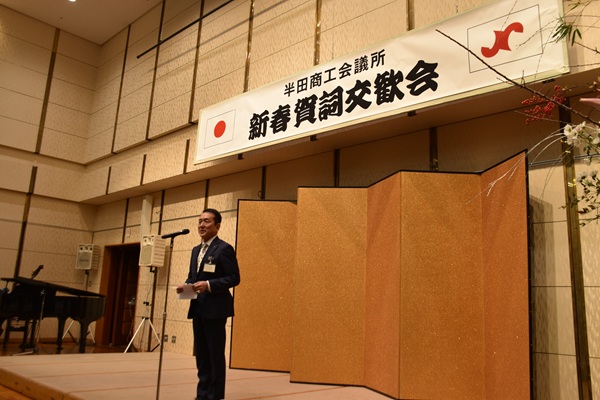 半田市長の久世孝宏氏より、年頭の挨拶と共に、今後も商工会議所との連携を深めていく意向が示された他、「住む人、働く人、訪れる人から『選ばれるまち』半田市へ」をテーマに、ゲストスピーチが行われました。