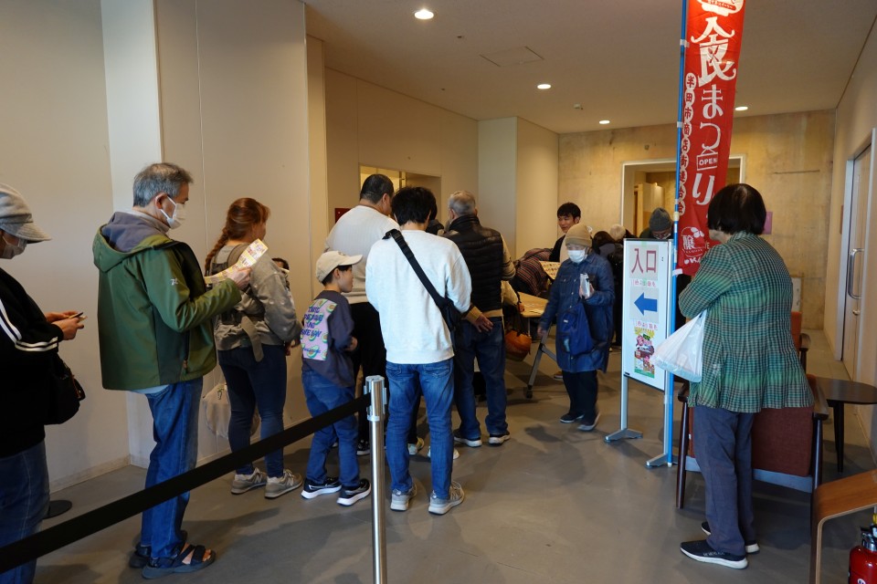 本イベントは、半田市内の事業者に出店いただき、来場者に半田の“おいしい”を体験していただくことで、各店舗の認知度向上と来店促進につなげることを目的として市内の32事業所が出店、約1000食が用意された。当日は天候にも恵まれ、開催時間前から会場には長い列ができるなど大きな賑わいを見せ、終始活気あふれる雰囲気となった。