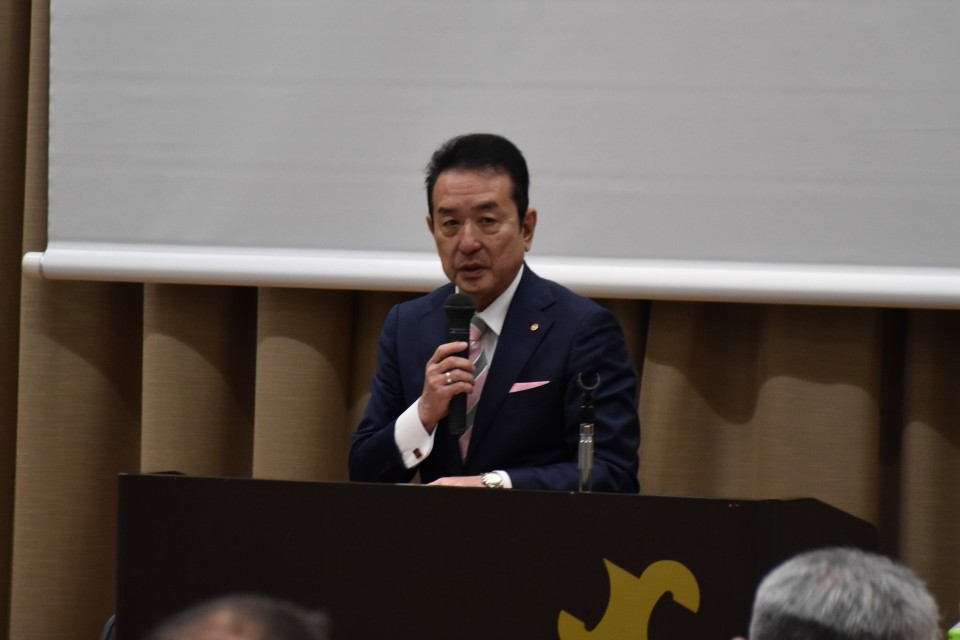 顧問である、久世市長は挨拶にて、日頃の市政に対して謝意を述べられた他、今後の半田市の取組等について、引き続き理解と協力いただくよう述べました。