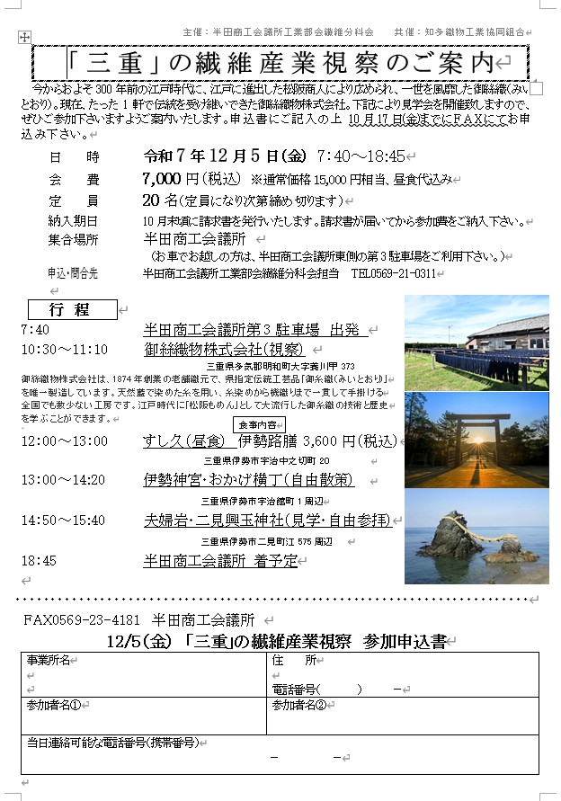 半田商工会議所工業部会繊維分科会担当